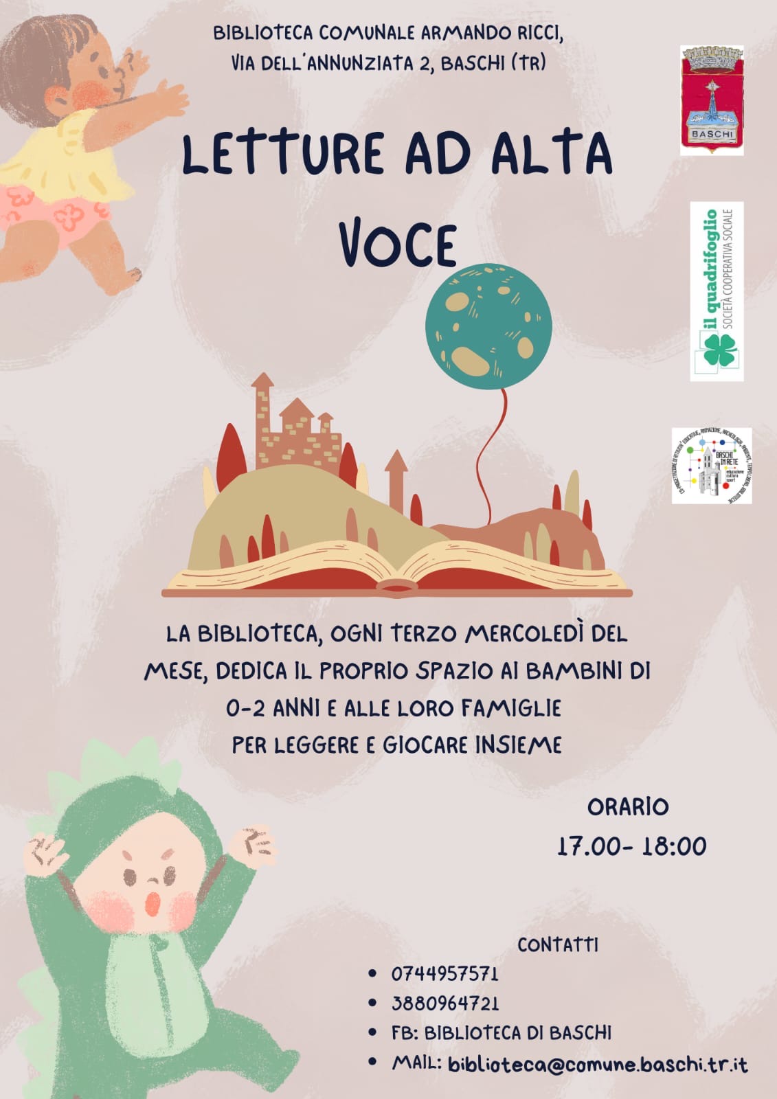 La biblioteca ogni terzo mercoledì del mese dedica il proprio spazio ai bambini di 0 - 2 anni e le lore famiglie.